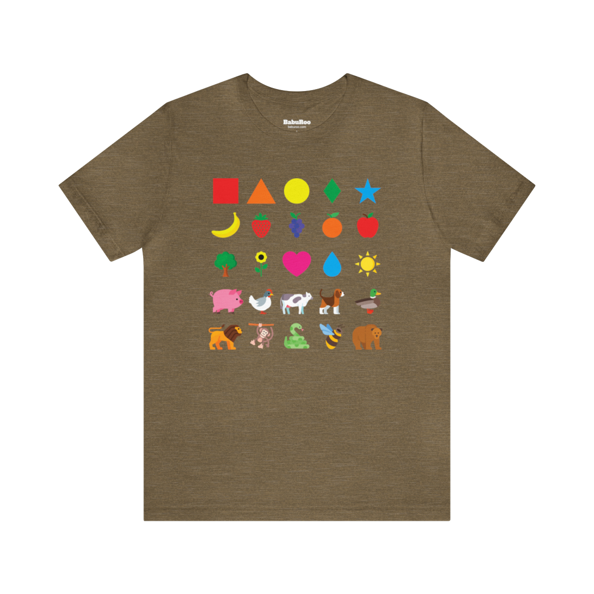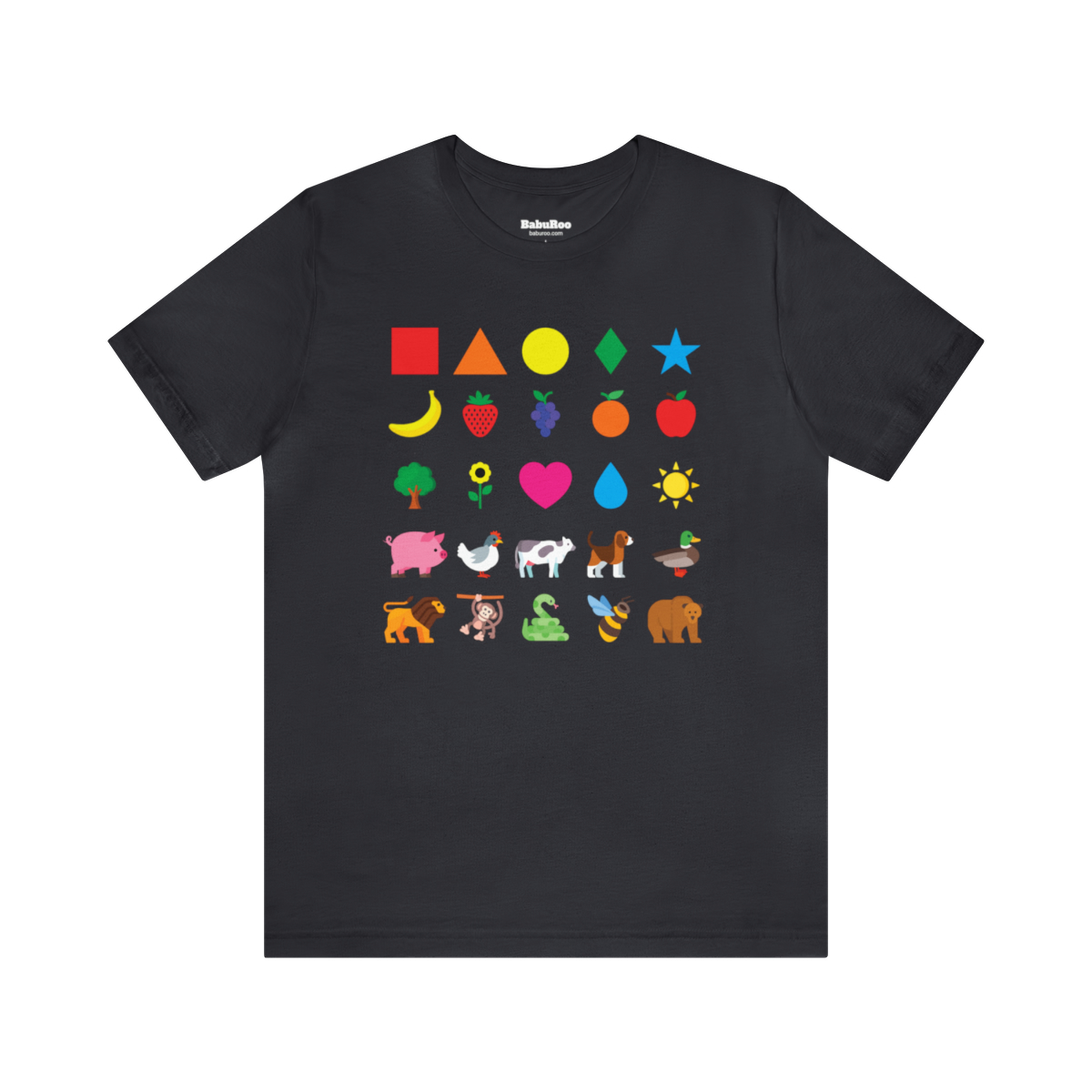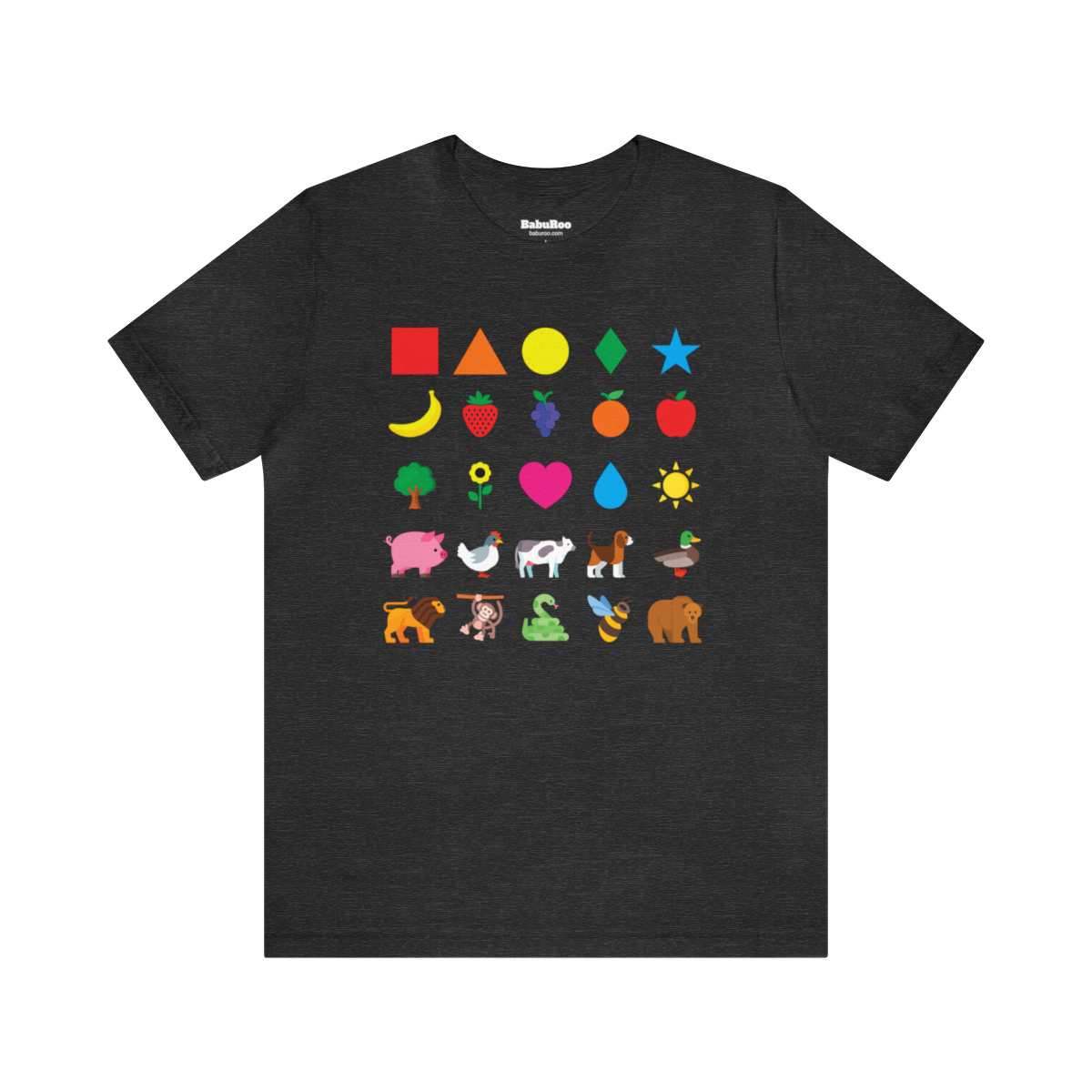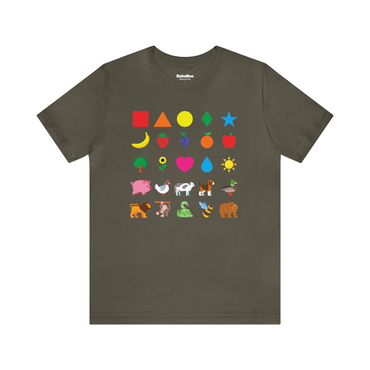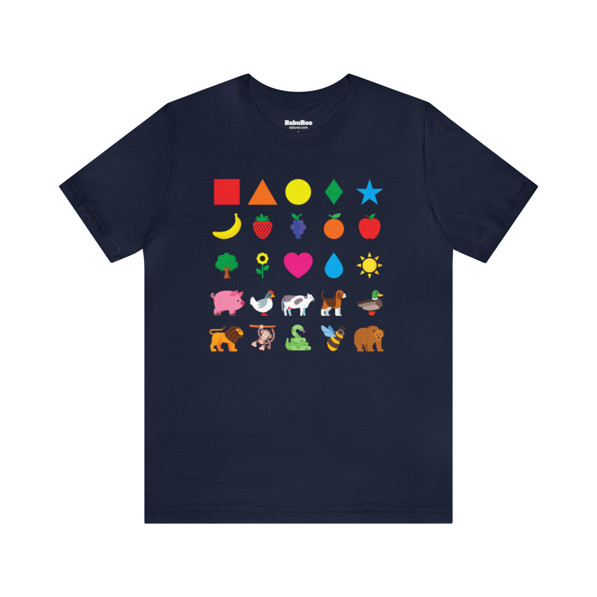 Introducing Baburoo's Travel Shirt – the perfect blend of comfort and education for your little one on the go! Crafted with soft, breathable fabric, this shirt is more than just clothing; it's a fun and interactive learning experience for your baby. Featuring vibrant graphics of different shapes, colors, and adorable animals, this Travel Shirt is designed to entertain and educate simultaneously.