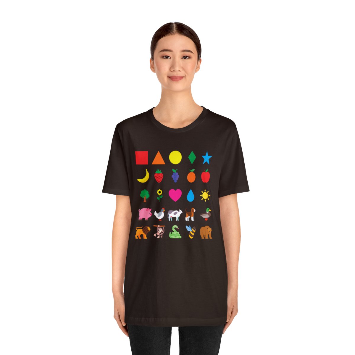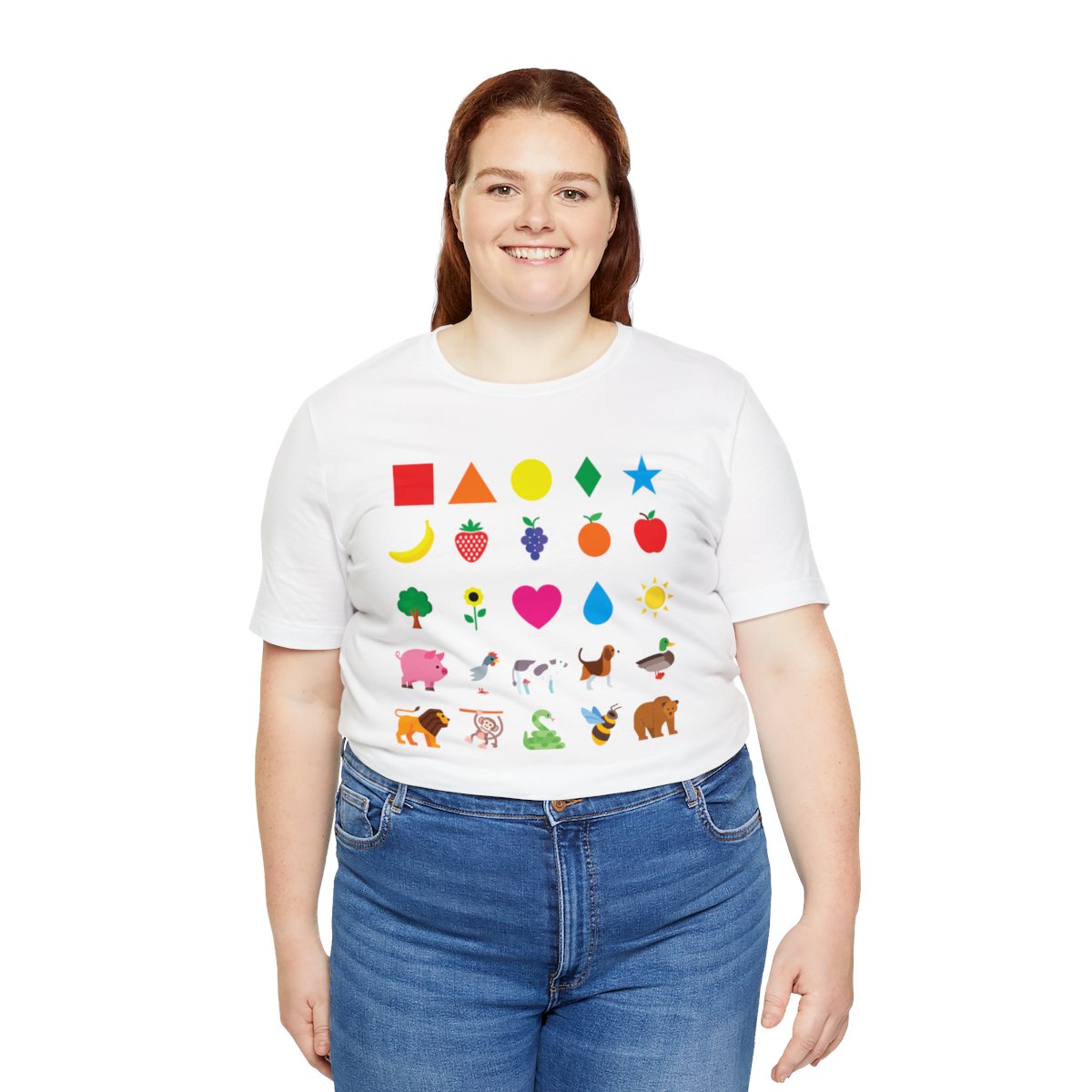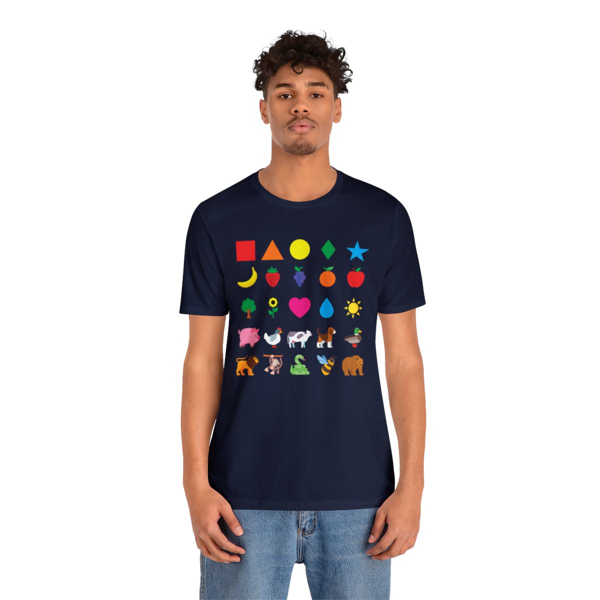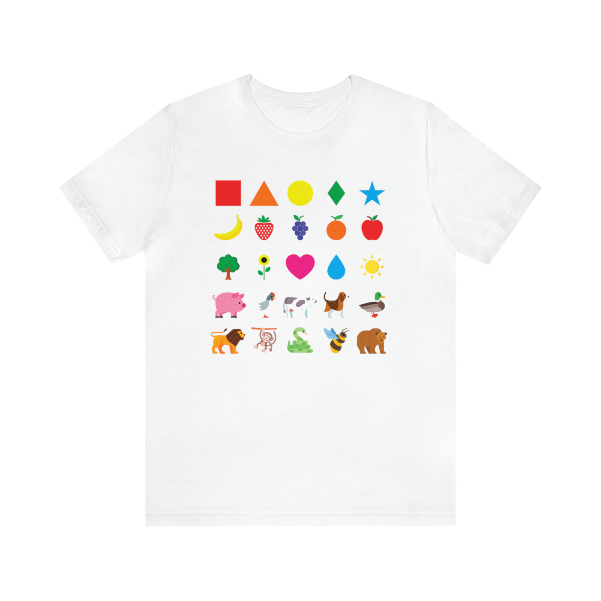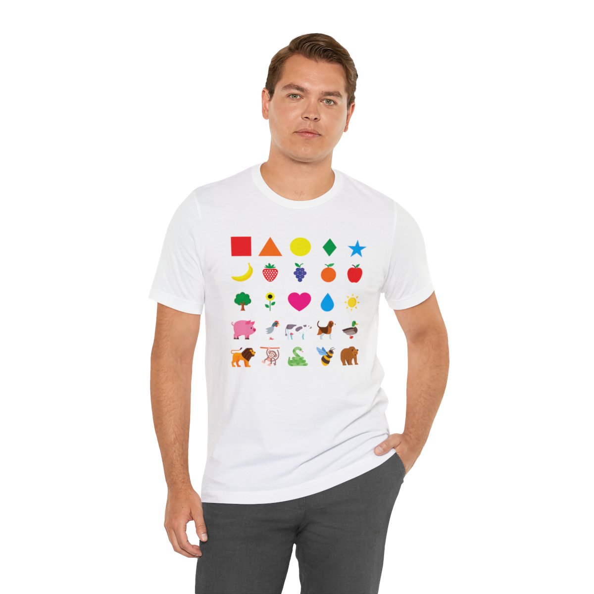But that's not all – our Travel Shirt goes beyond basic shapes and colors. Your little one will also encounter images of a tree, flower, water drop, and a sun, sparking curiosity and engaging their growing minds. It's not just a shirt; it's a multi-sensory experience that makes learning a part of everyday adventures.