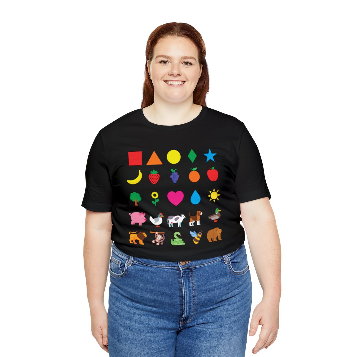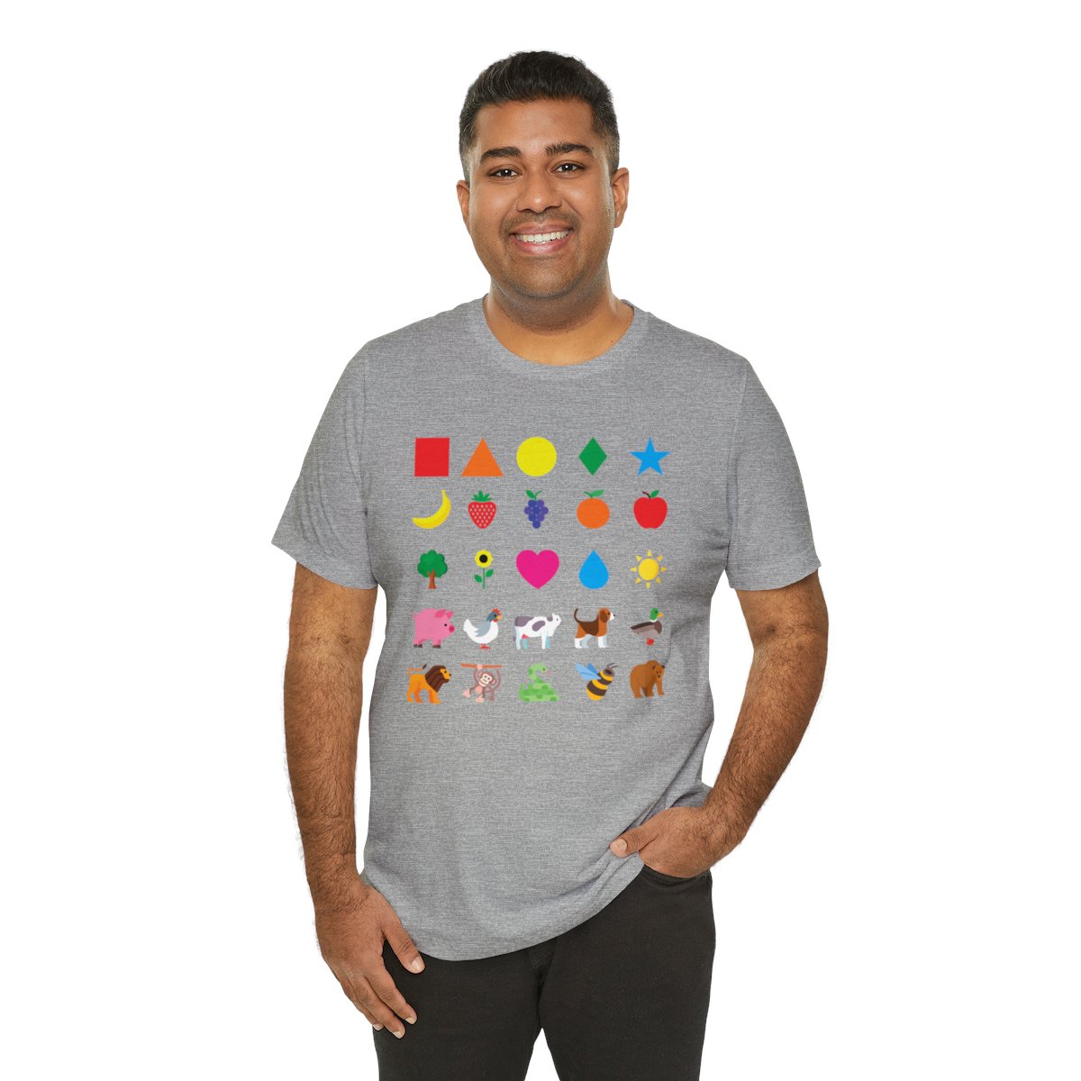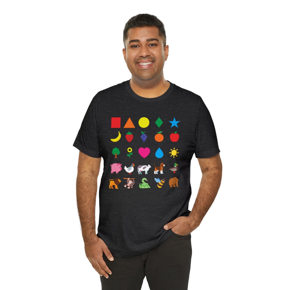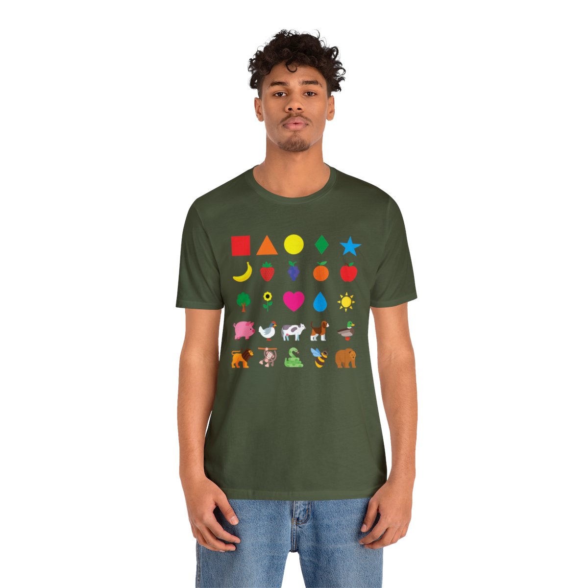 But that's not all – our Travel Shirt goes beyond basic shapes and colors. Your little one will also encounter images of a tree, flower, water drop, and a sun, sparking curiosity and engaging their growing minds. It's not just a shirt; it's a multi-sensory experience that makes learning a part of everyday adventures.