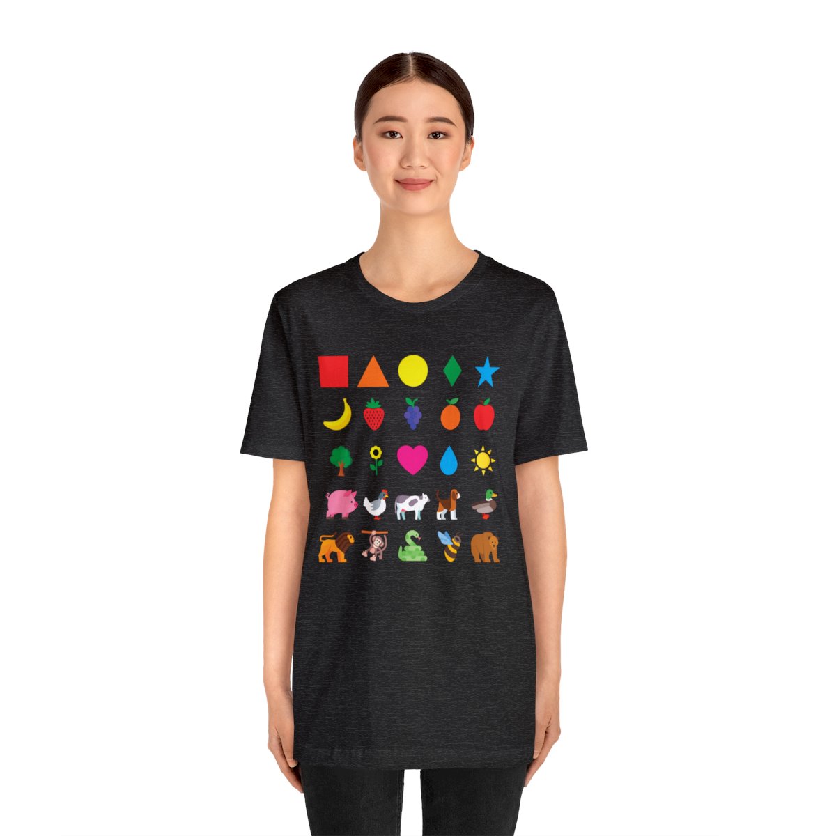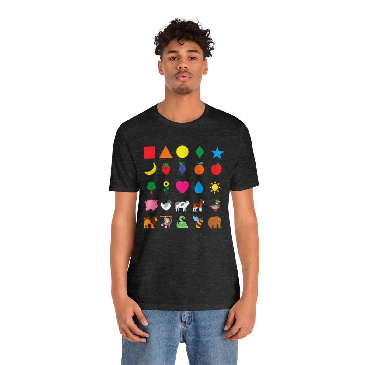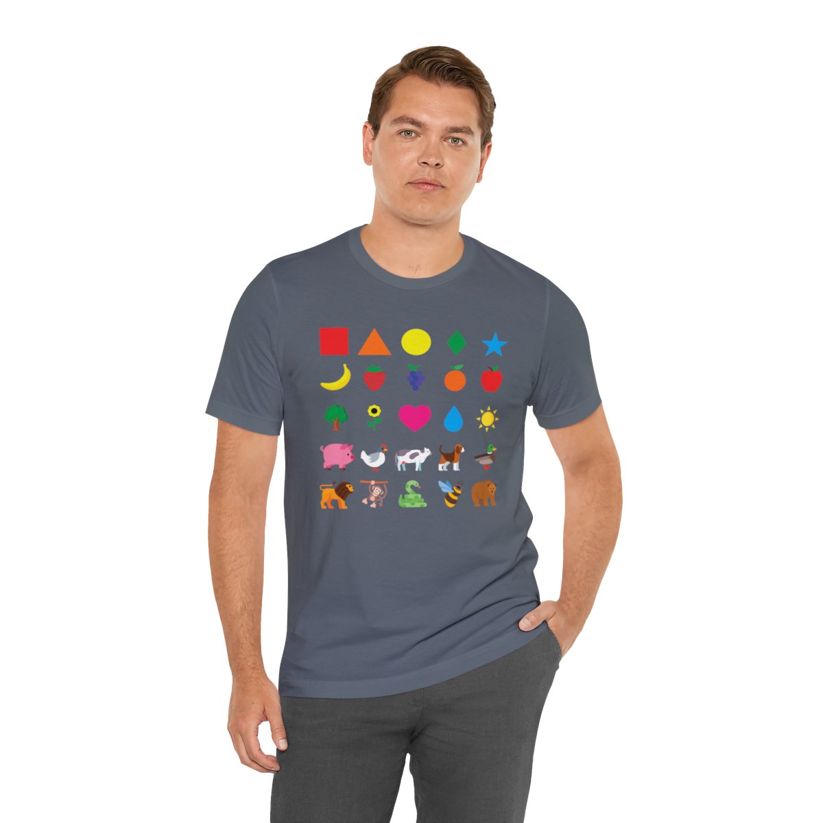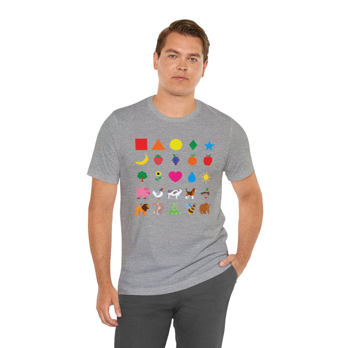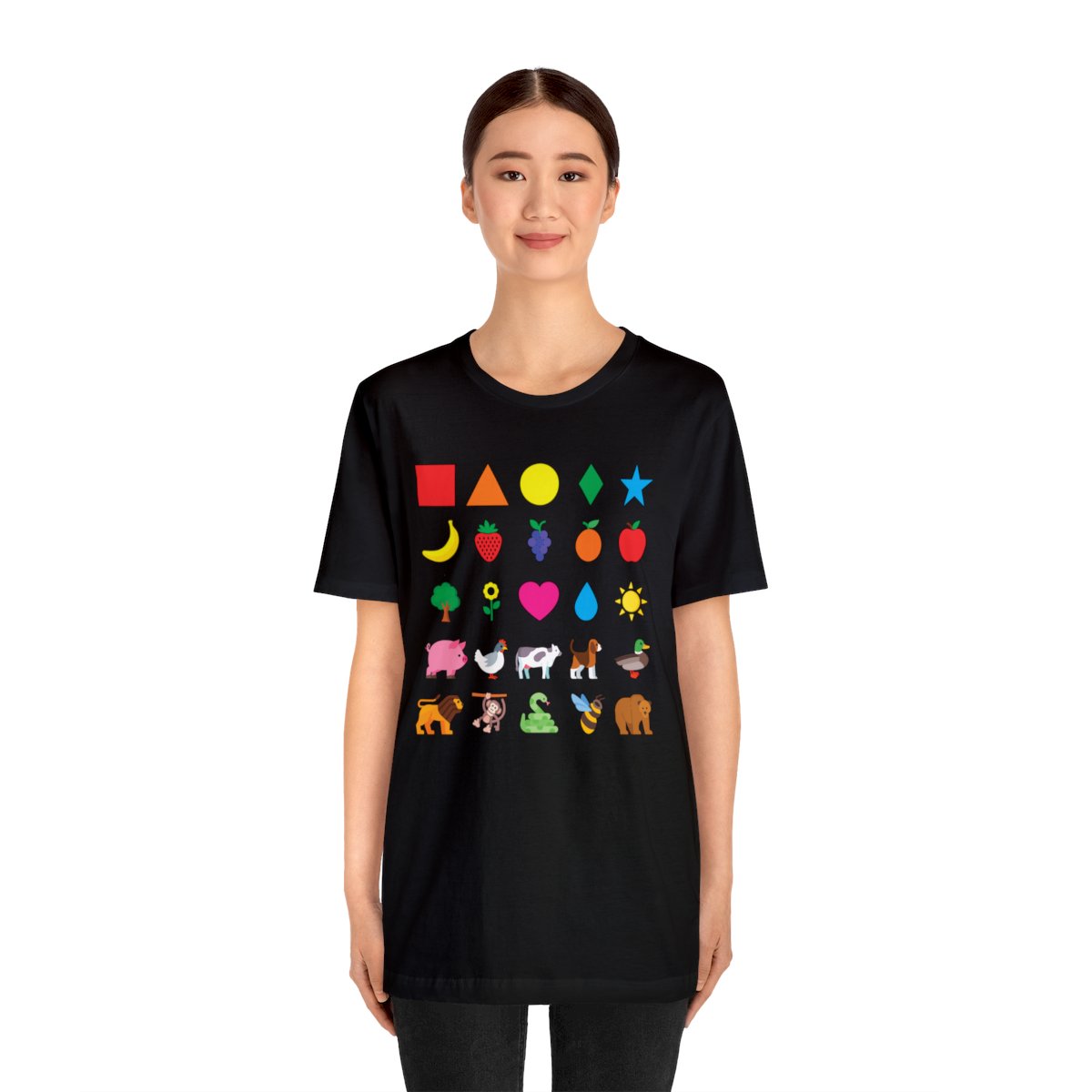 But that's not all – our Travel Shirt goes beyond basic shapes and colors. Your little one will also encounter images of a tree, flower, water drop, and a sun, sparking curiosity and engaging their growing minds. It's not just a shirt; it's a multi-sensory experience that makes learning a part of everyday adventures.