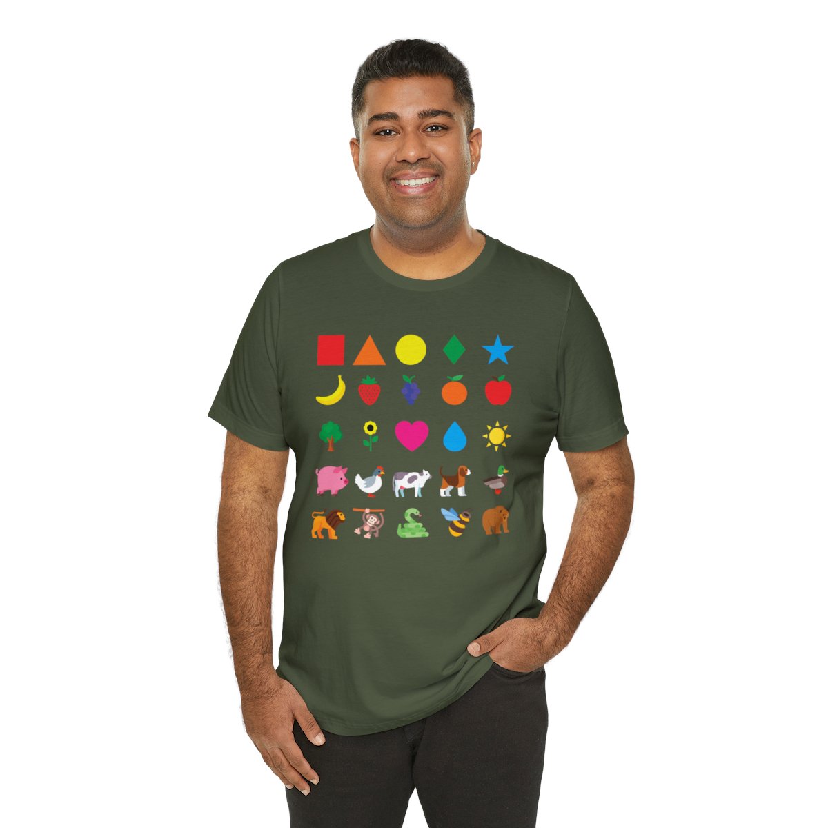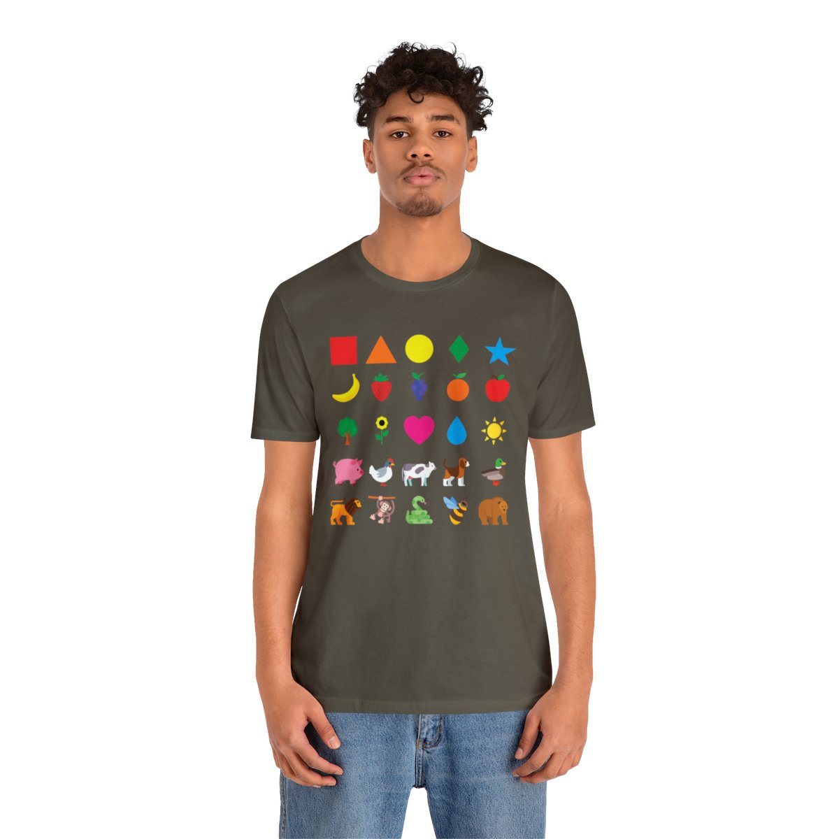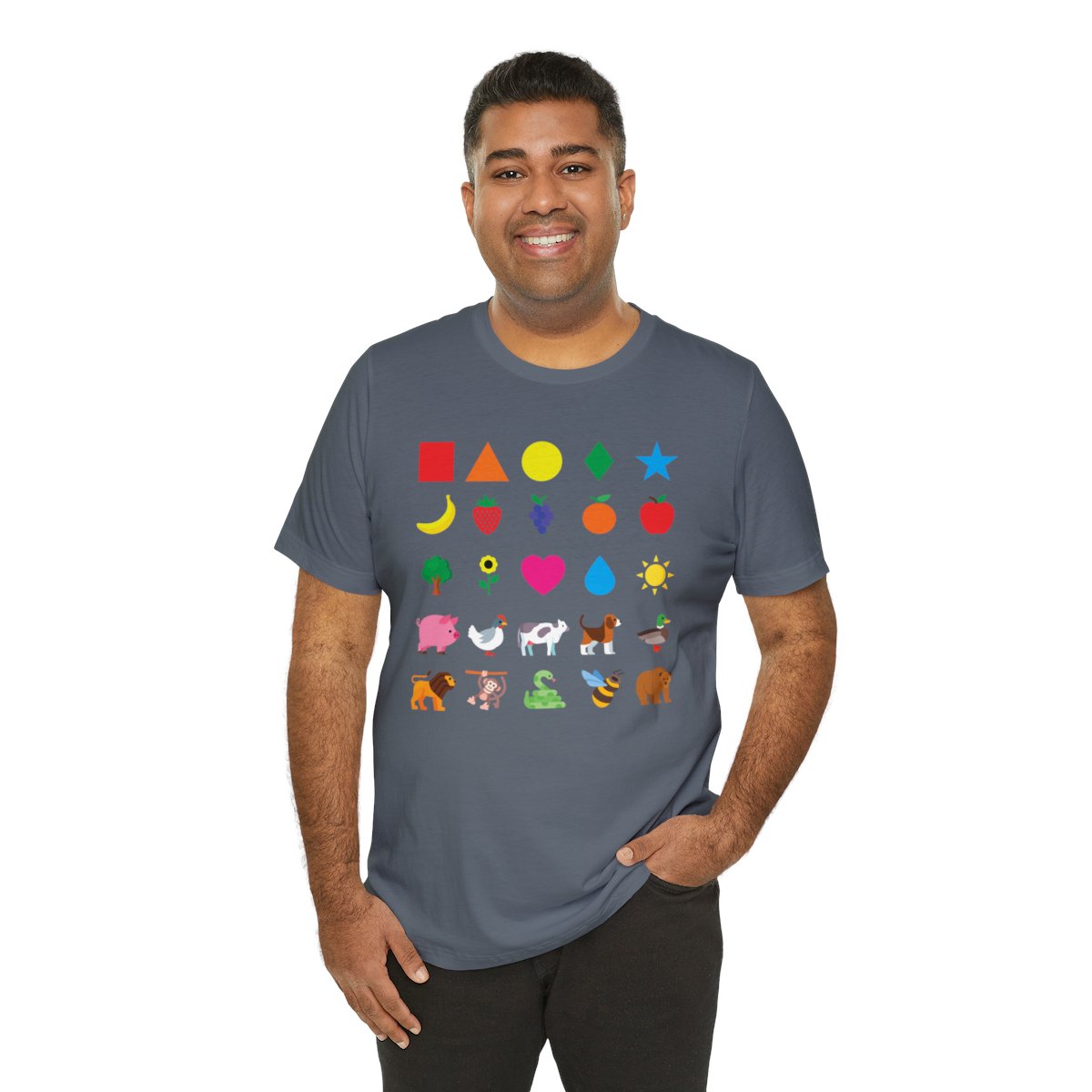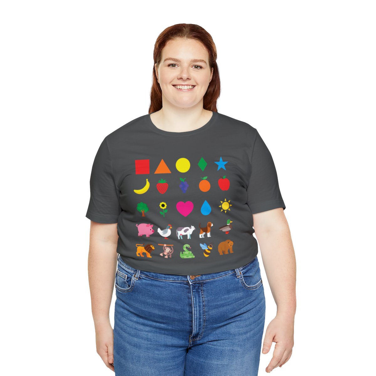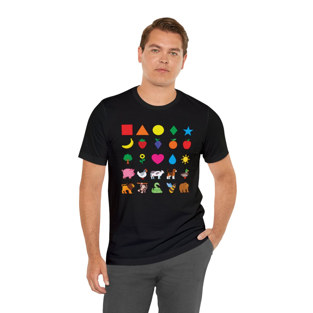But that's not all – our Travel Shirt goes beyond basic shapes and colors. Your little one will also encounter images of a tree, flower, water drop, and a sun, sparking curiosity and engaging their growing minds. It's not just a shirt; it's a multi-sensory experience that makes learning a part of everyday adventures.